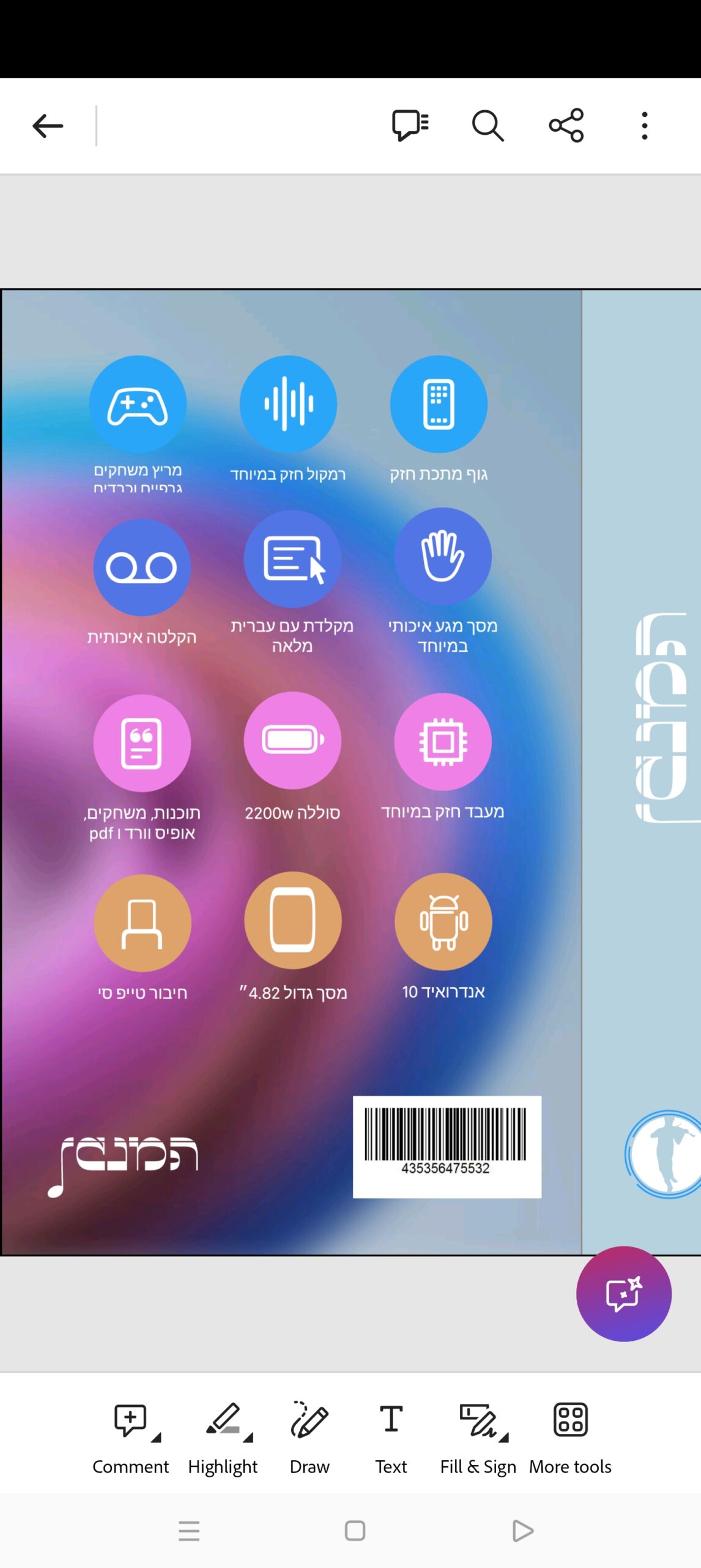 מסך ענק במיוחד 5 אינץ'