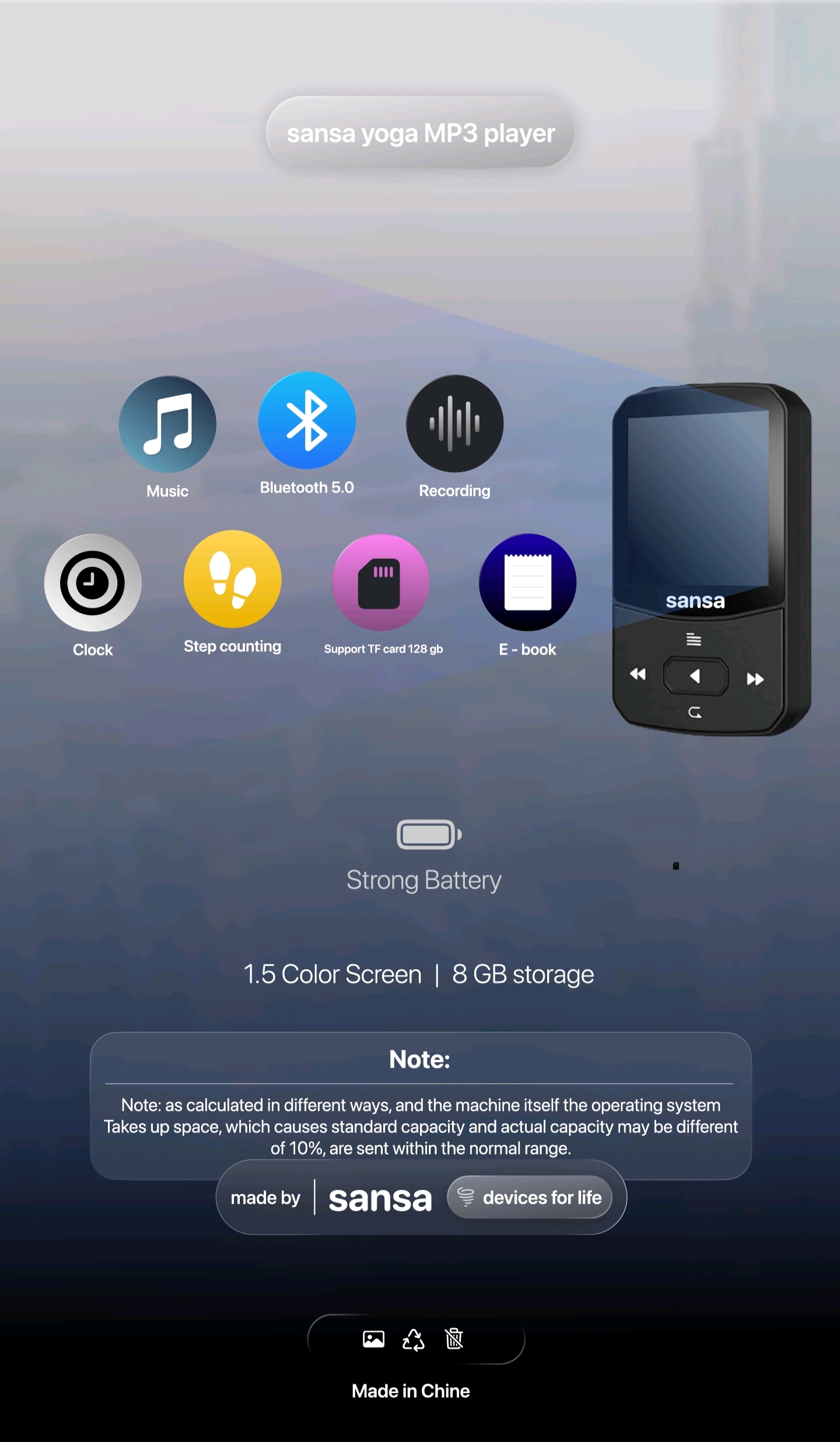 נגן קליפס איכותי במיוחד מבית המותג Sansa. מתאים לאנשים מבוגרים ואברכים שרוצים מכשיר אמין איכותי וחזק.